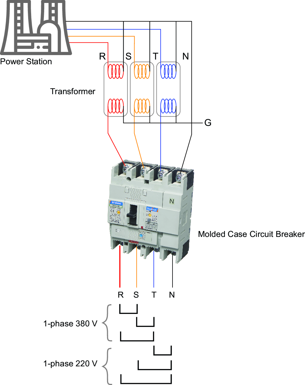 R-S, S-T, 또는 R-T 결선으로 단상 380 V를 얻을 수 있고, R-N, S-N, T-N 결선으로 단상 220 V를 얻을 수 있다. 3상 전기는 단상 전기에 비해 여러모로 경제적이라고. 소비 전력이 6200 W인 제품에 단상 220 V 전기를 걸면