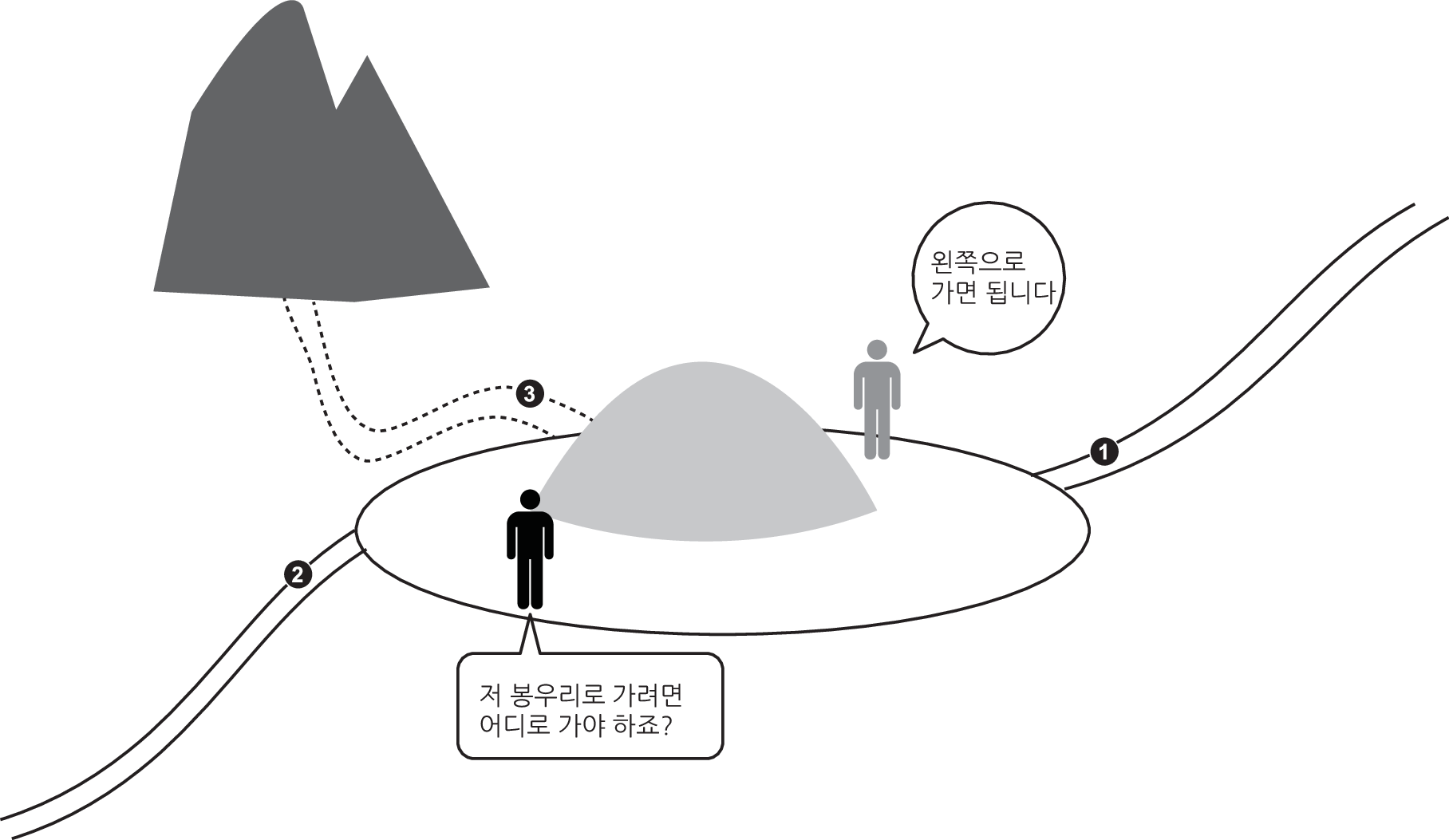 이 그림에서 운전석 쪽을 자신있게 오른쪽이라 말할 수 있을까? 운전자 관점에서 그의 좌석은 왼쪽에 있다. 어떤 제품의 측면들을 사용자의 관점에서 보아야 할지, 자동차처럼 제품의 관점에서 보아야 할지 애매하다.