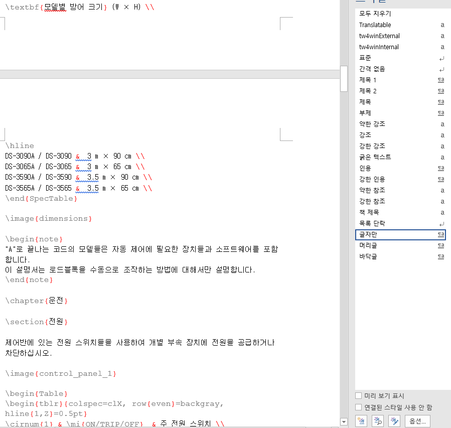 위의 설정 파일도 정규 표현식을 사용하는 것인데, 워드에서는 텍스트 에디터에 비해 제한된 표현식을 사용할 수 있다. 이를테면 줄 끝을 가리키는 "$"를 사용할 수 없다.