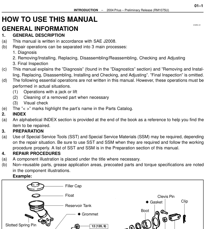 이것은 내가 웹에서 찾은 것인데, 토요타 프리우스를 위한 서비스 매뉴얼의 첫 부분으로 보인다. 다음 문장이 인상적이다.